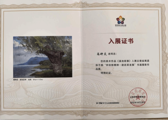 《滇池叙事》绘画作品入展证书